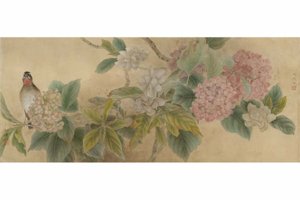 《藤花双禽图 》